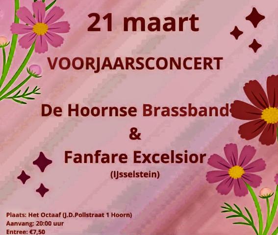 Op zondag 21 maart geeft de Hoornse Brassband een concert samen met Fanfare Excelsior uit IJsselstein